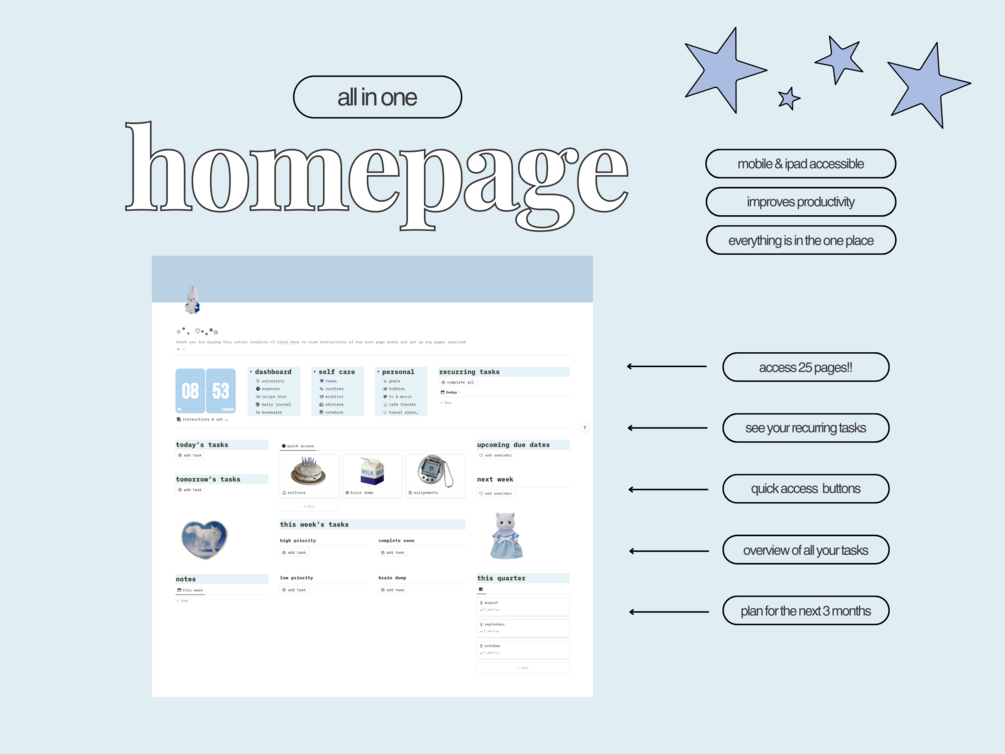 Notion Dashboard | Light Blue Aesthetic