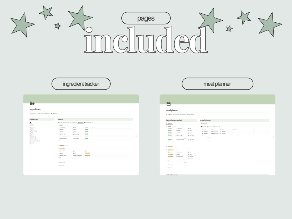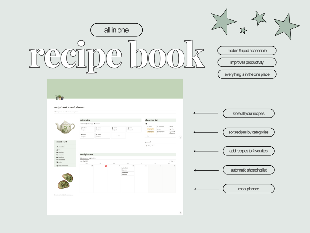 Recipe Book | Meal Planner | Notion Template | Green Cottagecore Aesthetic