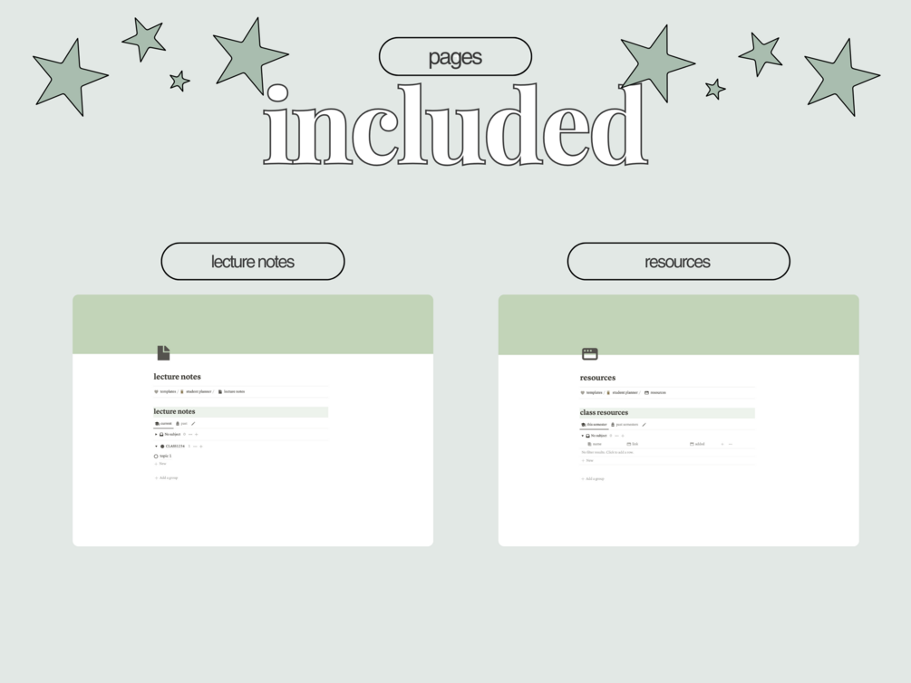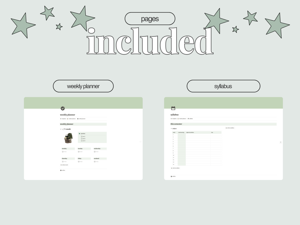Student Planner | Notion Template | Green Cottagecore Aesthetic