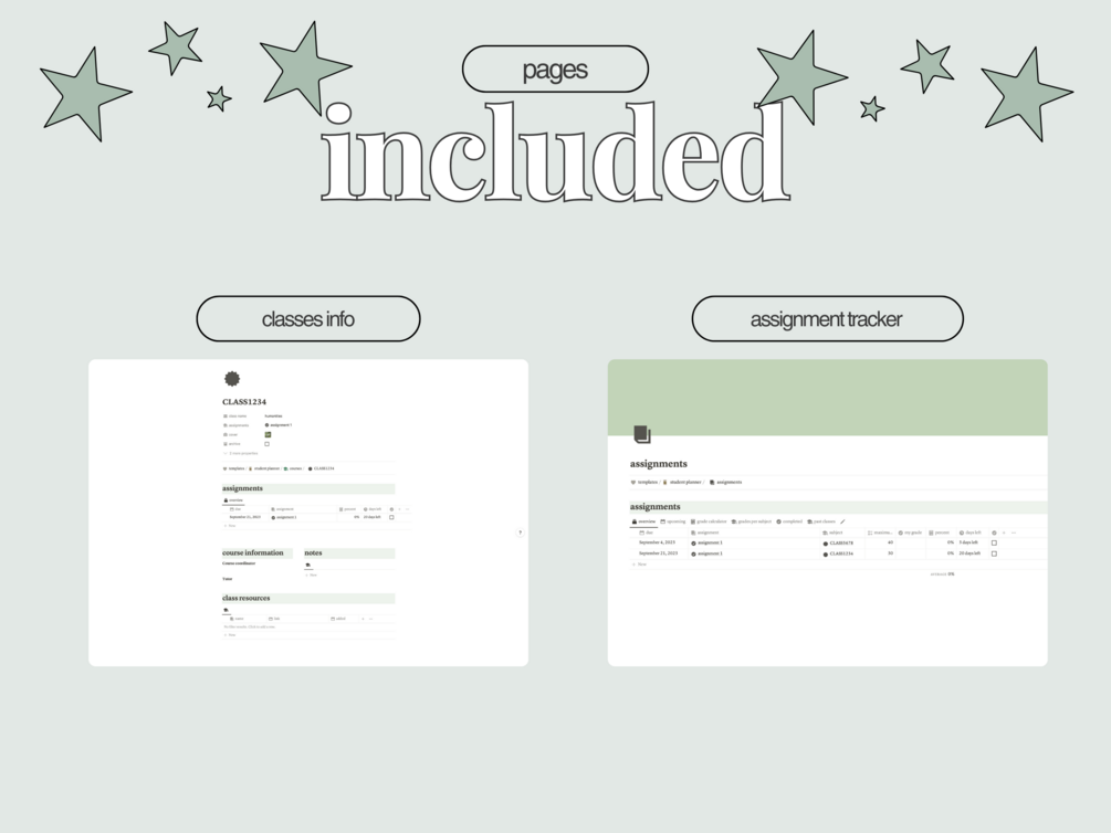 Never miss a deadline again by tracking your assignments. Keep on top of your grades with the templates in built grade tracker.