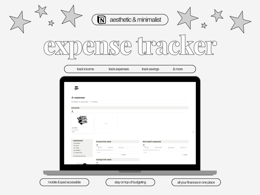 Stay on top of your finances and budgeting with this easy to use Notion Template!