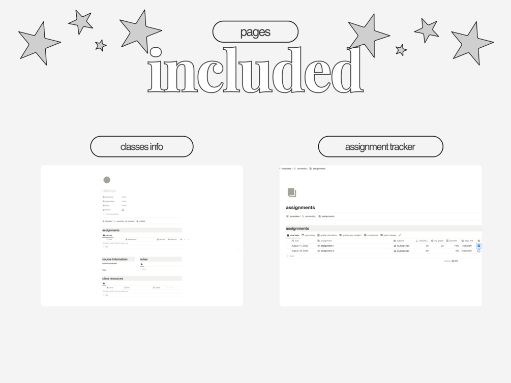 Never miss a deadline again by tracking your assignments. Keep on top of your grades with the templates in built grade tracker.