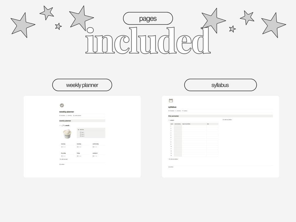 Student Planner | Notion Template | Grey White Black Aesthetic